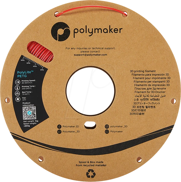 Es el mismo material con el que se fabrican la mayoría de las botellas plásticas (PET), pero es apto para impresión 3D. Esto le da una excelente resistencia química, buena tolerancia al calor y cierta flexibilidad ante impactos.